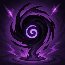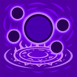 Creates a gravity singularity in a random enemy area, pulling enemies inward and dealing 0.5(2)% current HP as damage, then explodes after 5 seconds, permanently reducing max HP of all enemies in the area by 8(20)%.